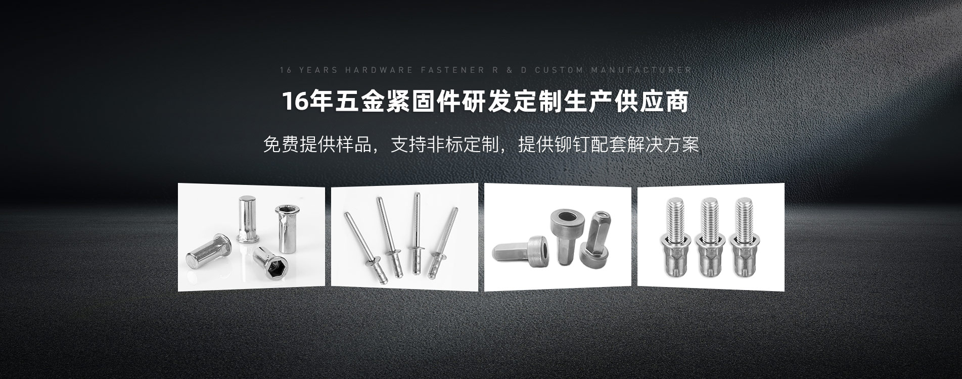 專業針對市場進行開發生產和銷售各種碳鋼、鋁、銅、不銹鋼等材質的鉚接件、標準件以及各種非標異型緊固件